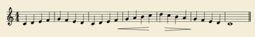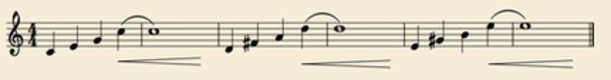 Using any vowel, smoothly gliding the voice up and get louder on the top note.